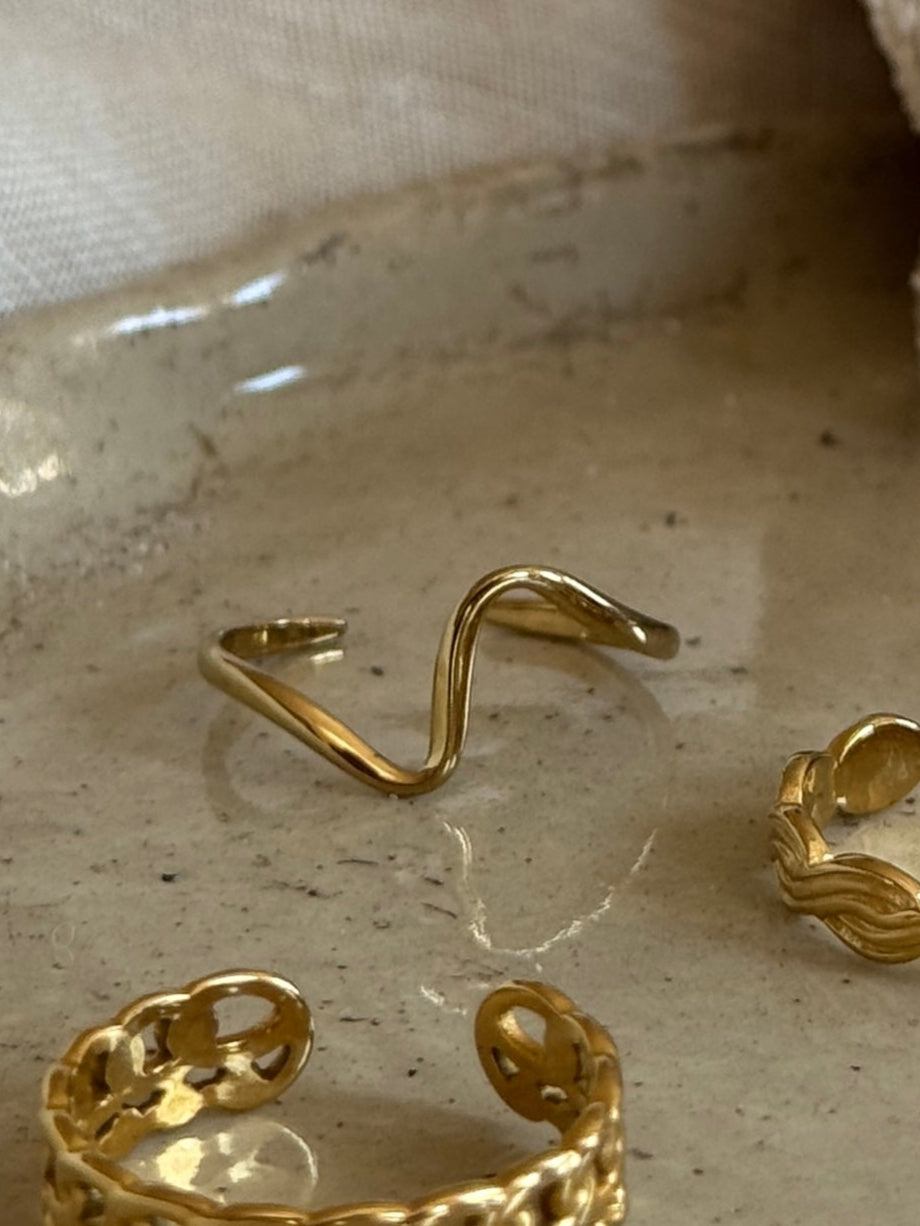 Moderner Ring im eleganten Wave-Design – geschwungen, minimalistisch und trotzdem ein besonderer Hingucker. Lässt sich perfekt solo tragen oder mit anderen Ringen kombinieren.